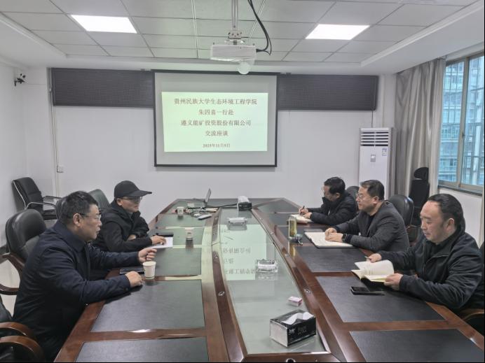 为深入推进产教融合,强化高校与企业协同育人机制,拓展毕业生就业渠道,2025年11月5日下午,生态环境工程学院院长朱四喜、博士王洵一行赴遵义能矿投资股份有限公司进行交流访问。双方围绕科研项目合作、实习基地建设及毕业生就业等议题展开深入交流。