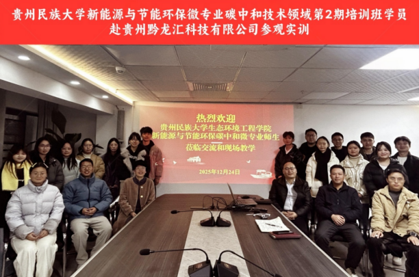 2025年12月24日,微专业负责人彭艳教授带领全体学员走进产教融合合作单位——贵州黔龙汇科技有限公司,开展结业前“最后一课”。企业专家现场展示了碳排放核算、清单编制及零碳园区建设等核心项目,分享了由政府主导、企业实施的油茶产业链全生命周期(LCA)碳核查、核算及方法学开发等最新成果,并展望公司未来在碳中和领域的深度布局。互动环节,学员们踊跃交流研学收获与个人职业愿景,企业导师逐一解答学员关于职业路径、能力储备等提问,表示将以此次实训为契机,与贵州民族大学共建人才培养长效机制,持续提供实践岗位与就业机会,协同培育契合行业发展需求的高素质碳中和专业人才。